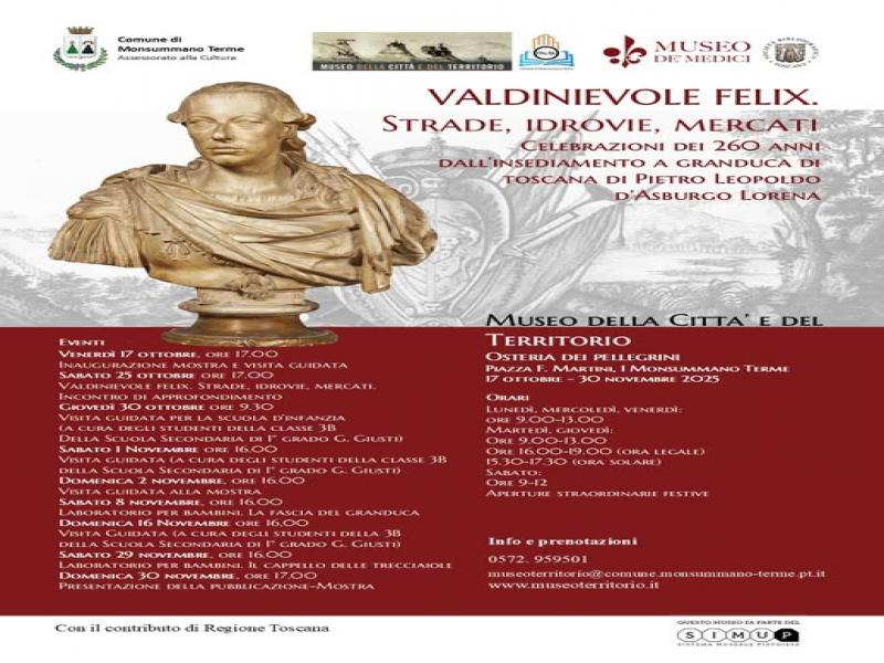 In collaborazione con il Museo de' Medici, l'esposizione artistico documentaria, nell'ambito delle celebrazioni dei 260 anni dall'insediamento di Pietro d'Asburgo Lorena come Granduca di Toscana, racconta l'importanza delle riforme del sovrano illuminato nel nostro territorio.