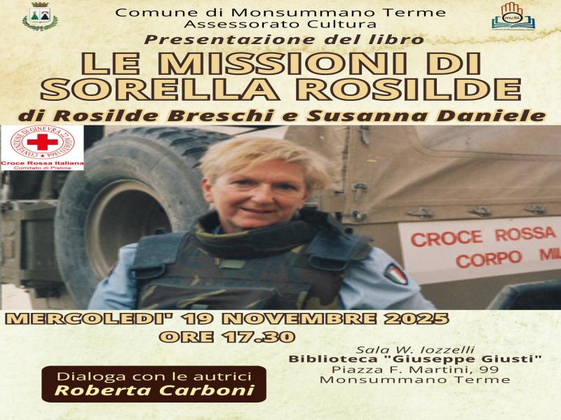 L'Assessorato alla Cultura del Comune di Monsummano Terme organizza la presentazione del libro “LE MISSIONI DI SORELLA ROSILDE” – Mauro Pagliai Editore di Rosilde Breschi e Susanna Daniele, che si terrà mercoledì 19 novembre 2025, alle ore 17.30, nella Sala “Walter Iozzelli” della Biblioteca comunale “Giuseppe Giusti”.