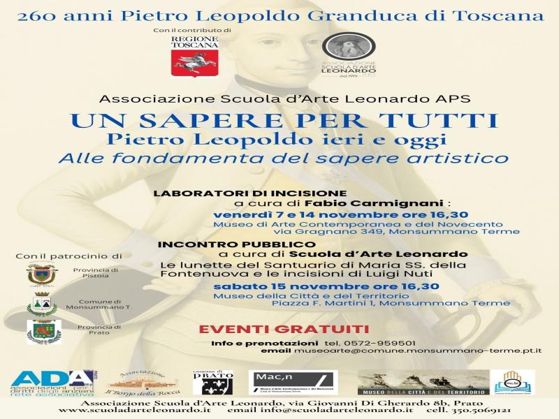 Nell'ambito delle celebrazioni dei 260 anni dall'insediamento a Granduca di Toscana di Pietro Leopoldo i musei civici di Monsummano Terme ospiteranno l'Associazione Scuola d'Arte Leonardo APS con la loro manifestazione Alle fondamenta del sapere artistico, manifestazione delle celebrazioni dei 260 anni di Pietro Leopoldo Granduca Toscana.